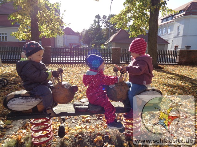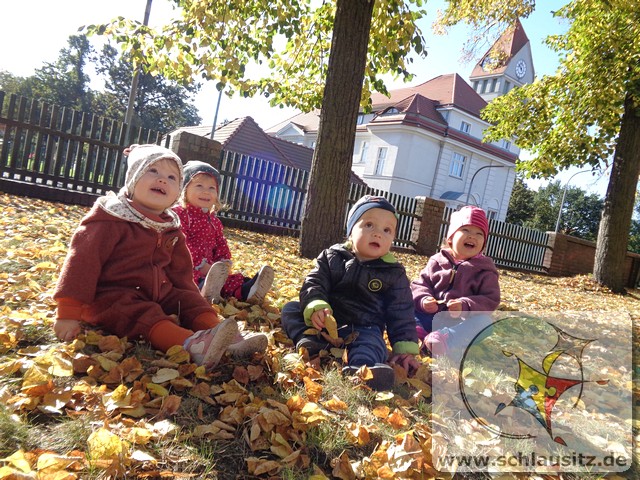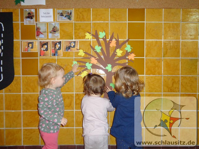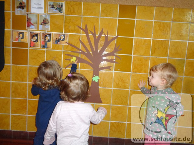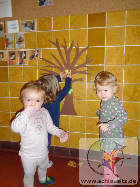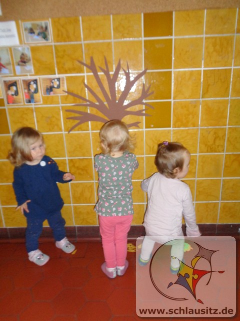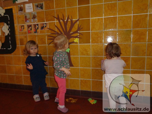 Herbstlich wurde der September in der Glühwürmchen-Gruppe begrüßt. In unserem Gruppenraum haben wir eine Blättergirlande auf gehangen und sogar an unseren Fenstern haben Blätter, Igel und bunte Regenschirme Platz gefunden. Die Mamas und Papas haben sogar schon die Regensachen und die Gummistiefel mitgebracht, damit wir bei jedem Wetter nach draußen gehen können. So haben wir bunte Blätter zum Dekorieren und Basteln gesammelt. Außerdem haben wir einen Baum in unserem Flur mit Blättern verziert. Auch musikalisch wurde im Morgenkreis der Herbst begrüßt mit den Liedern „Der Sommer muss gehen“ und „Blätterfall“. Pünktlich zum Herbstbeginn wurde unsere Gruppe durch ein neues Glühwürmchen verstärkt. Die großen Glühwürmchen sind sehr vorsichtig im Umgang mit ihm, denn er ist der Jüngste der Gruppe.