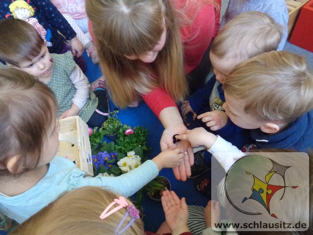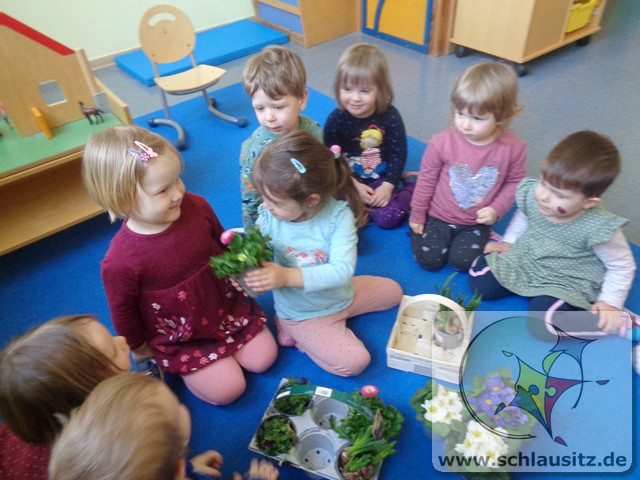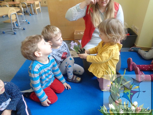 Wir betrachteten die mitgebrachten Frühblüher in unserem Morgenkreis und sprachen dabei über ihre Farbe, wie sie heißen und ob die Kinder diese schon einmal irgendwo gesehen haben.