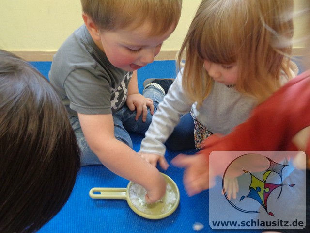 Image00008Voller Vorfreude auf unser diesjähriges Lichterfest stimmten die Leuchtkäfer sich mit den Liedern „Ihr Blätter wollt ihr tanzen“ und „Ich geh´ mit meiner Laterne“ auf das Fest ein. Zusammen gestalteten wir im Vorfeld unsere eigenen Laternen dafür. Dies bereitete allen großen Spaß! Auch bei regnerischem und kühlem Wetter kommt bei uns keine Langeweile auf! Wir besuchten unseren Bewegungsraum und ließen unserem Bewegungsdrang freien Lauf. Zum Bewegungslied „Das ist gerade, das ist schief“ tanzten wir rhythmisch. Auch das Klettern, Balancieren, Hüpfen und „Bankziehen“ können wir schon sehr gut, und macht uns sehr viel Spaß. Endlich hat es zum ersten Mal geschneit, und das war für uns eine tolle Überraschung. Aber was ist eigentlich Schnee? Gemeinsam gingen wir nach draußen und taten uns in eine Schüssel ein wenig Schnee. Dann hieß es geduldig sein und warten. Im Gruppenraum beobachteten wir, wie sich der Schnee ganz langsam in Wasser verwandelte. Das war für alle sehr faszinierend! Ganz angetan von den ersten Schneeflocken fingen wir an, unseren Gruppenraum winterlich zu schmücken, sangen Winterlieder und bastelten Tannenbäume, Schneemänner und Schneeflocken.