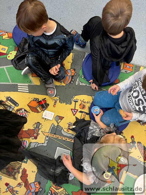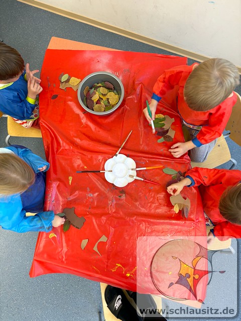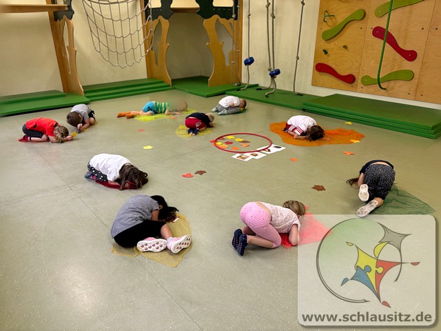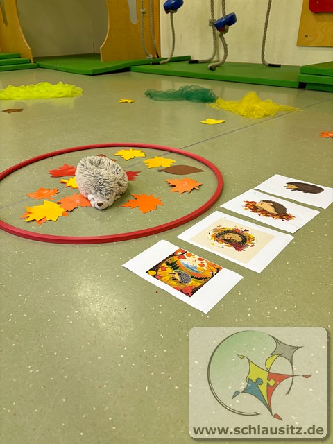 Im Oktober befassten sich die Leuchtkäfer mit dem Thema „Kleiner Igel“. Sie erfuhren allerhand wissenswertes über den Igel und seinen Lebensraum. In verschiedenen Fingerspielen und Bewegungsangeboten ahmten sie den Winterschlaf nach. Bei einem herbstlichen Spaziergang sammelten wir Blätter in verschiedenen Herbstfarben und gestalteten daraus einen kleinen Igel. Traditionell gab es vor dem langen Wochenende unsere große Halloween-Sause. Neben gruseligen Kostümen, einer Kinderdisco und verschiedenen kleinen Spielen unterstützen uns die Eltern dabei, ein leckeres Buffet für ihre Kinder zu zaubern. Vielen Dank dafür!