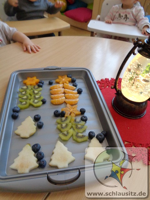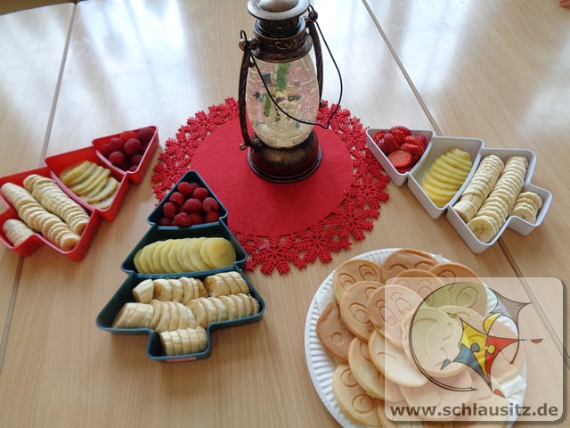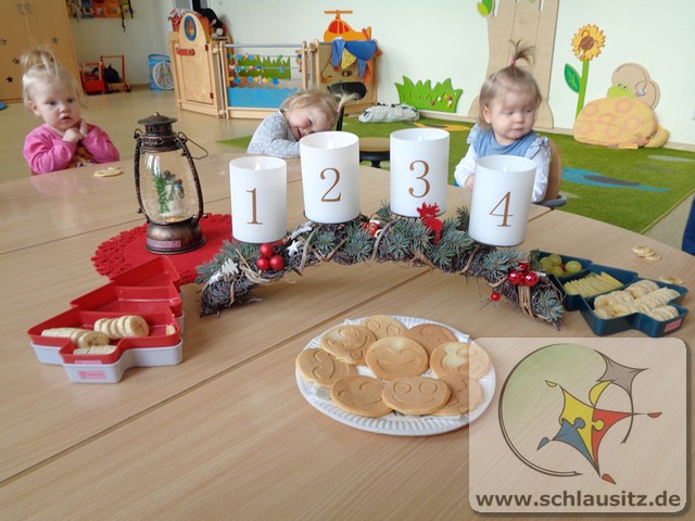 Auch wir Glühwürmchen waren fleißig in der Adventszeit. Bei leisen Weihnachtsliedern backten wir leckere Kekse, beim sanften Licht unserer Schneekugel schauten wir Weihnachtsbücher an, sangen Weihnachtslieder und bastelten kleine Präsente für unsere Eltern. Sogar kleine Rentiere fertigten wir als Zimmerschmuck an. Auch unsere Eltern überraschten uns mit tollen Weihnachtsideen. Nun warten wir gespannt auf den Weihnachtsmann. Ein besonderer Höhepunkt war der Besuch der Kirche in Brieske. Neugierig bestaunten wir den großen Weihnachtsbaum mit seinen vielen Lichtern und lauschten der Weihnachtsgeschichte. Nach einem leckeren Frühstück, liebevoll zusammengestellt von unseren Eltern, warten wir nun auf den Weihnachtsmann.